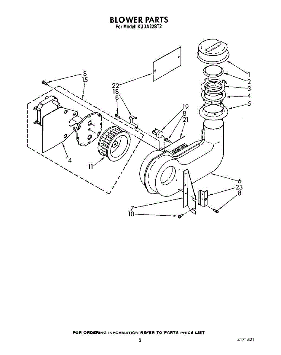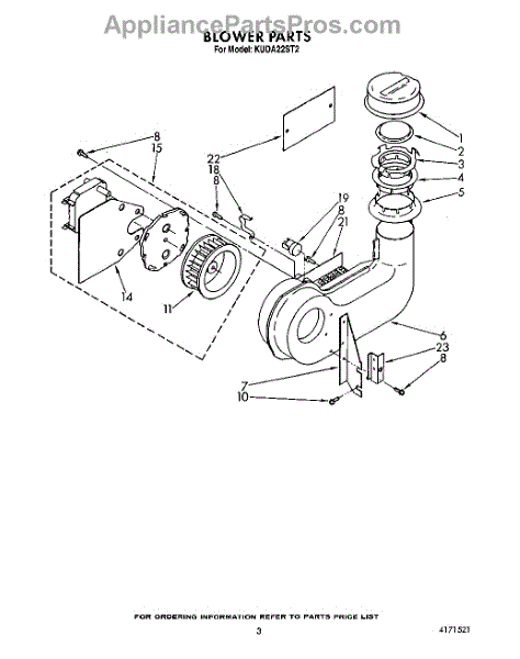 Parts for Kitchenaid KUDA22ST2: 03 - Blower Parts