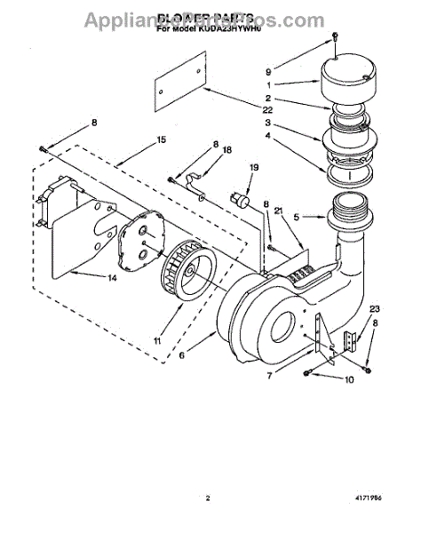 Parts for Kitchenaid KUDA23HYWH0: 02 - Blower Parts