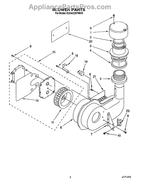 Parts for Kitchenaid KUDA23SYWH0: 03 - Blower Parts