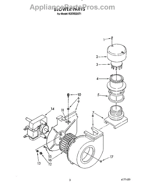 Parts for Kitchenaid KUDB220T1: 03 - Blower Parts