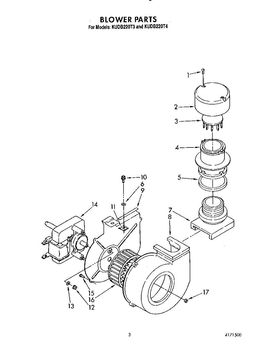 Parts for Kitchenaid KUDB220T4: 03 - Blower Parts