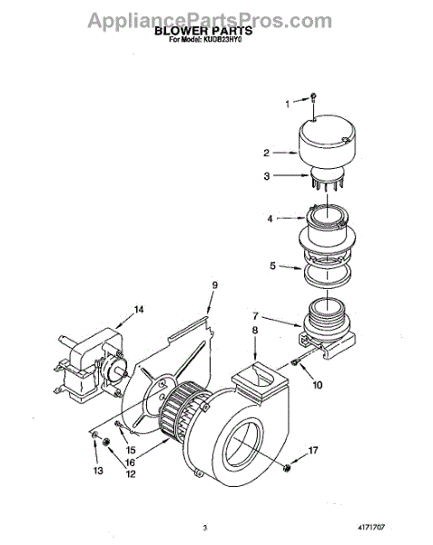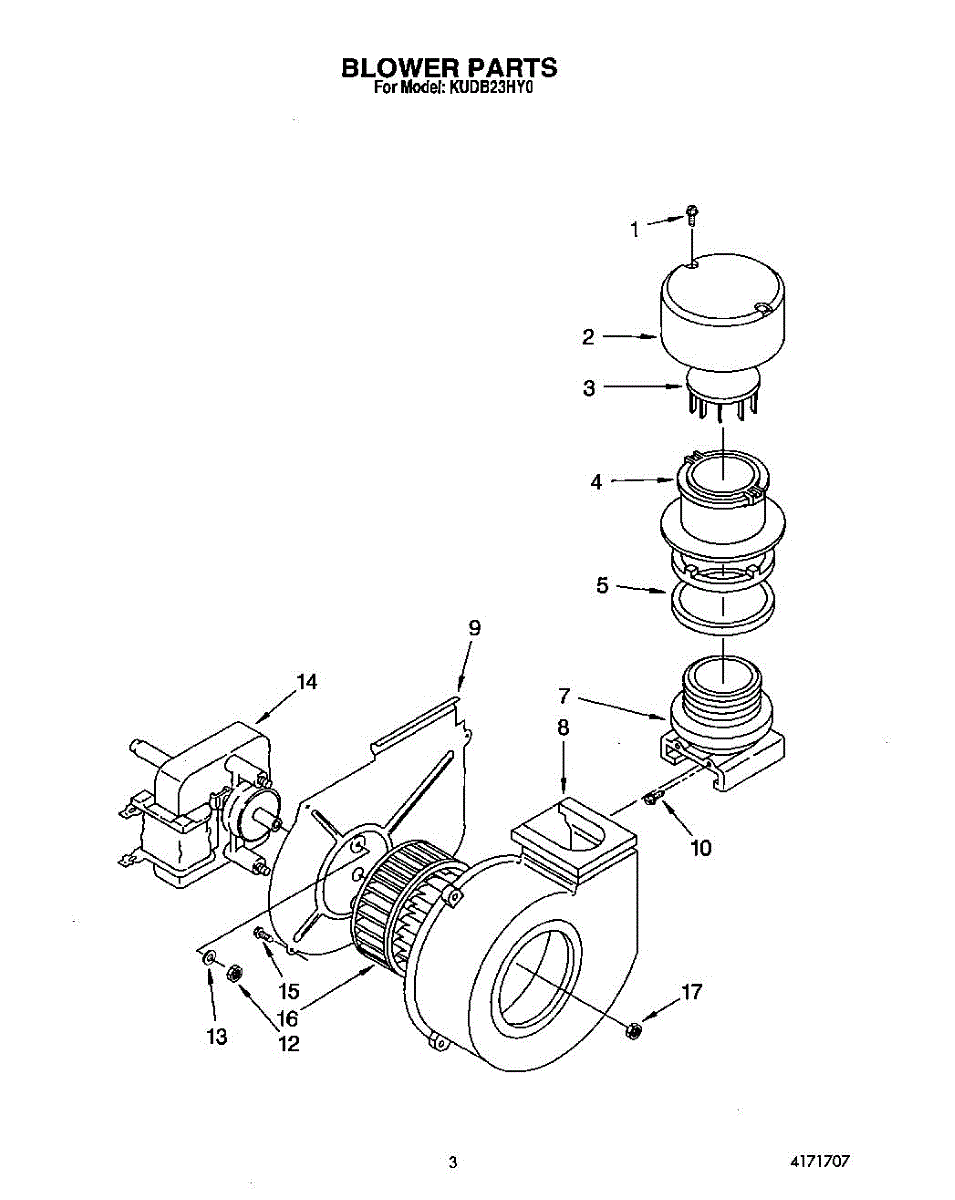 Parts for Kitchenaid KUDB23HY0: 03 - Blower Parts