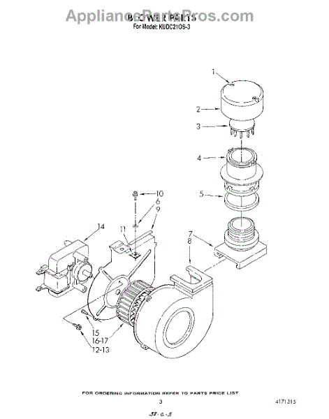 Parts for Kitchenaid KUDC210S3: 03 - Blower Parts