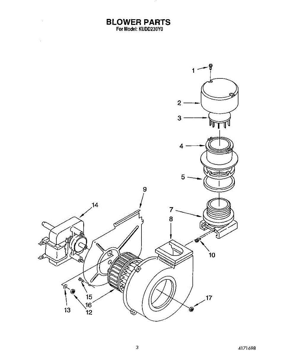 Parts for Kitchenaid KUDD230Y0: 03 - Blower Parts