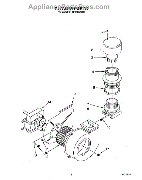 Parts for Kitchenaid KUDD230YWH0: 02 - Blower Parts