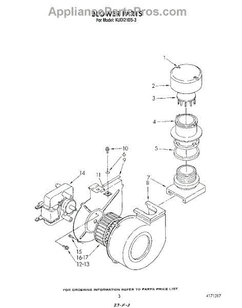 Parts for Kitchenaid KUDI21DS3: 03 - Blower Parts