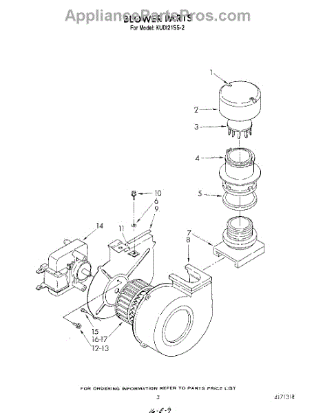 Parts for Kitchenaid KUDI21SS2: 03 - Blower Parts