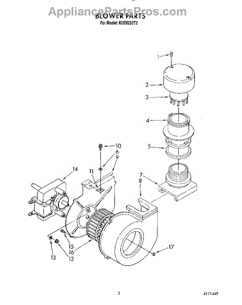 Parts for Kitchenaid KUDI220T2: 03 - Blower Parts
