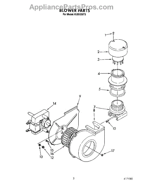 Parts for Kitchenaid KUDI220T5: 03 - Blower Parts