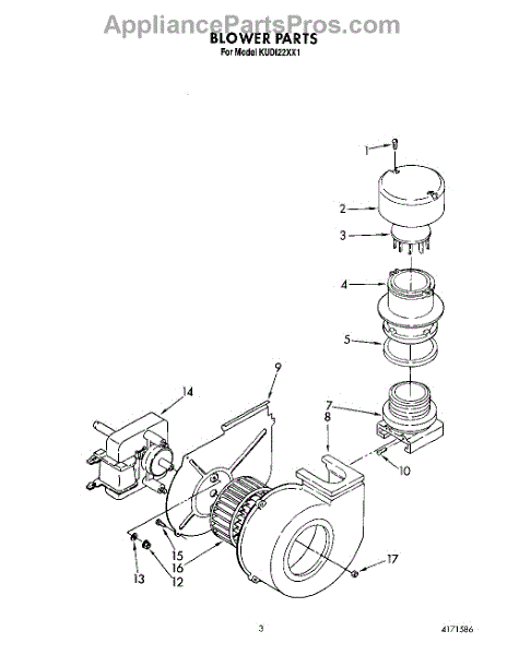 Parts for Kitchenaid KUDI22XX1: 03 - Blower Parts