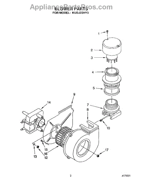 Parts for Kitchenaid KUDJ23HY3: 02 - Blower Parts