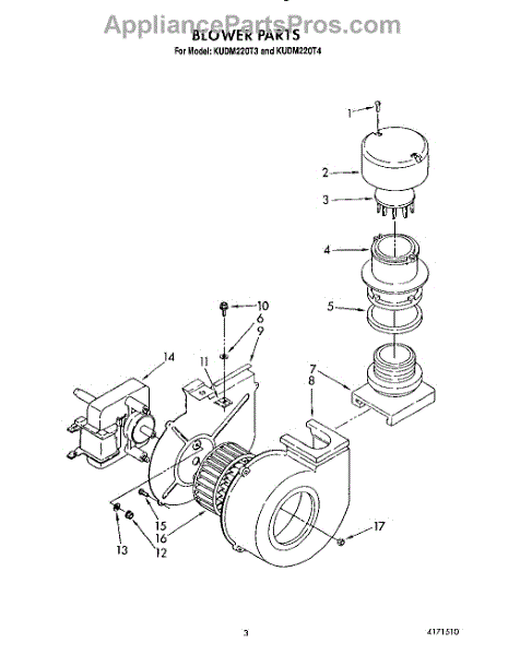 Parts for Kitchenaid KUDM220T3: 03 - Blower Parts