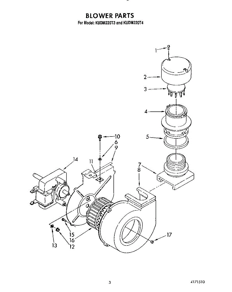 Parts for Kitchenaid KUDM220T4: 03 - Blower Parts
