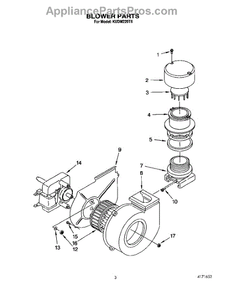 Parts for Kitchenaid KUDM220T6: 03 - Blower Parts