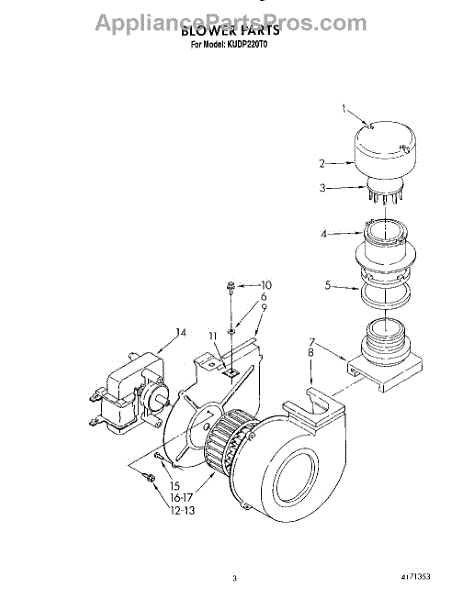 Parts for Kitchenaid KUDP220T0: 03 - Blower Parts