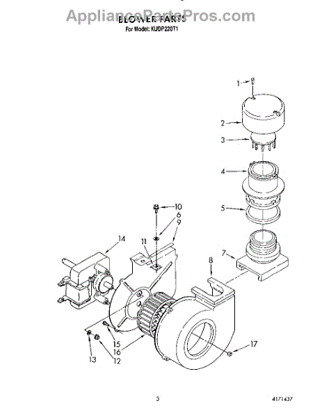 Parts for Kitchenaid KUDP220T1: 03 - Blower Parts