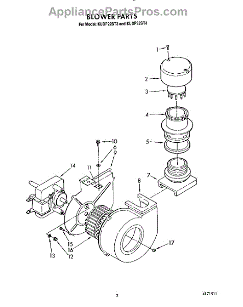 Parts for Kitchenaid KUDP22ST4: 03 - Blower Parts