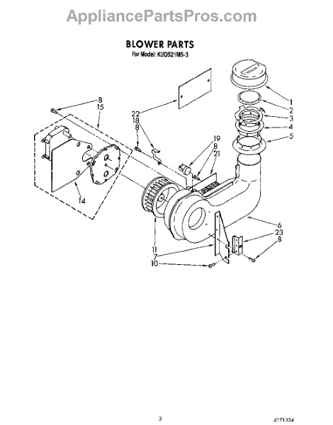 Parts for Kitchenaid KUDS21MS3: 03 - Blower Parts
