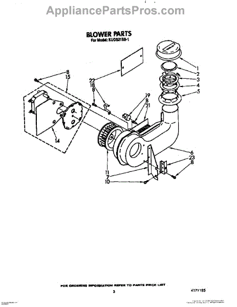 Parts for Kitchenaid KUDS21SS1: 03 - Blower Parts