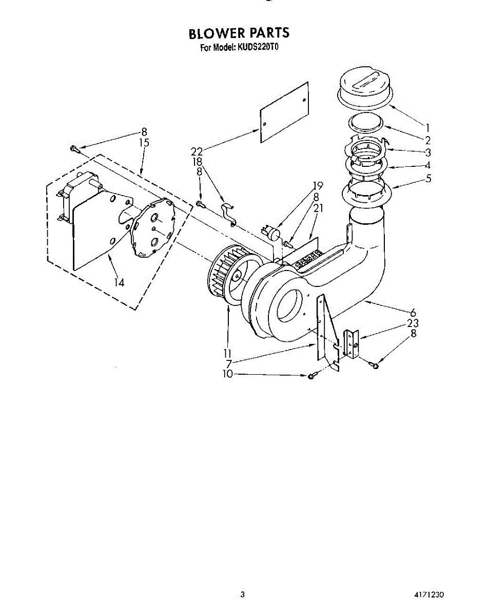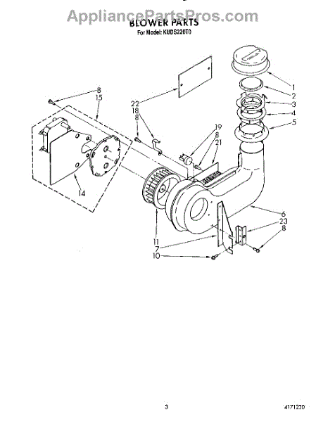 Parts for Kitchenaid KUDS220T0: 03 - Blower Parts