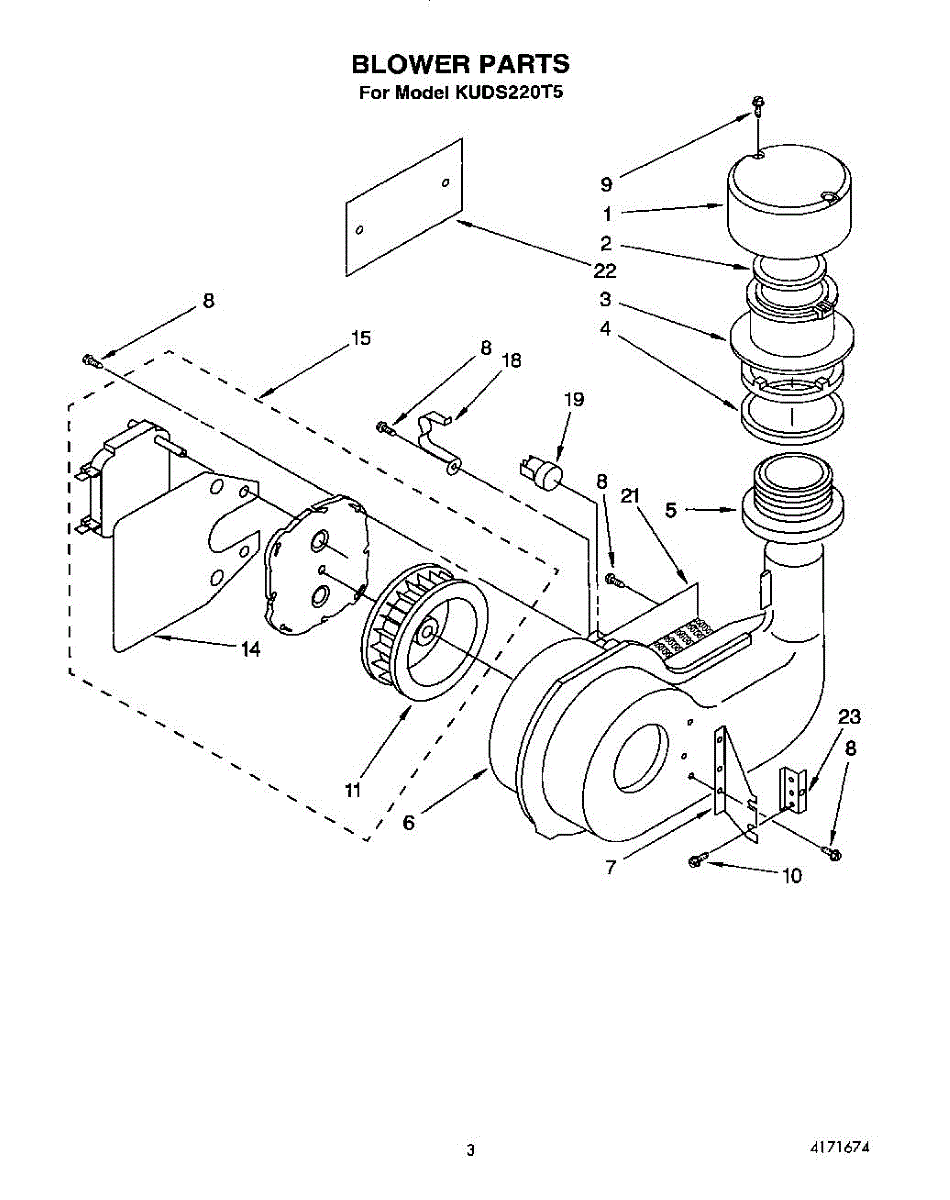 Parts for Kitchenaid KUDS220T5: 03 - Blower Parts