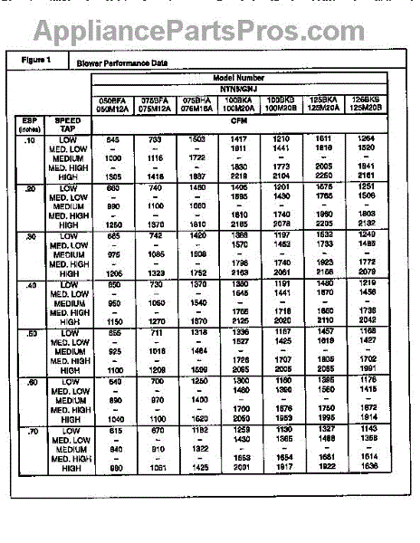Parts for Icp GNJ050M12A1: Blower Performance Data Parts