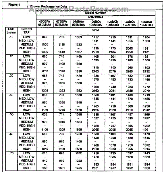 Parts for Icp NTN5100BKB1: Blower Performance Data Parts