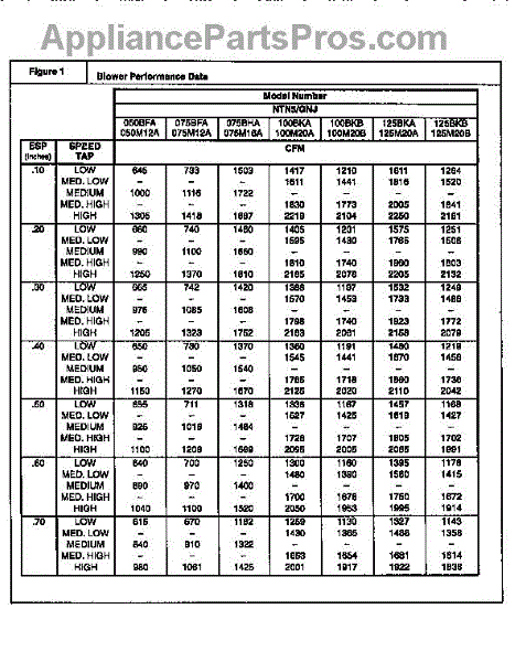 Parts for Icp NTN5125BKB1: Blower Performance Data Parts