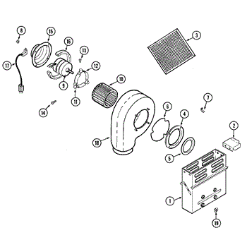 This blower wheel mounts on the drive motor and pushes air through the dryer drum and out the exhaust. Replacing a worn wheel restores proper airflow for consistent drying and helps prevent overheating and nuisance shutdowns. What it does:
