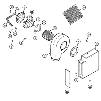 This blower wheel mounts on the drive motor and pushes air through the dryer drum and out the exhaust. Replacing a worn wheel restores proper airflow for consistent drying and helps prevent overheating and nuisance shutdowns. What it does: