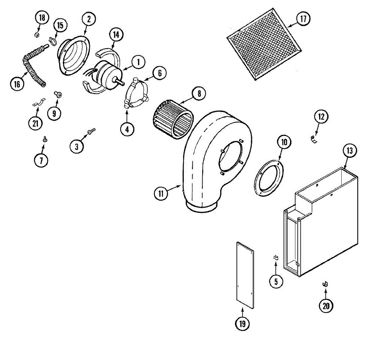 This blower wheel mounts on the drive motor and pushes air through the dryer drum and out the exhaust. Replacing a worn wheel restores proper airflow for consistent drying and helps prevent overheating and nuisance shutdowns. What it does: