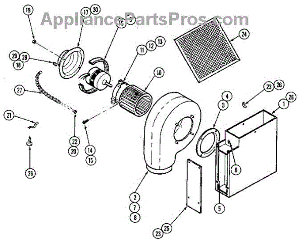 This blower wheel mounts on the drive motor and pushes air through the dryer drum and out the exhaust. Replacing a worn wheel restores proper airflow for consistent drying and helps prevent overheating and nuisance shutdowns. What it does: