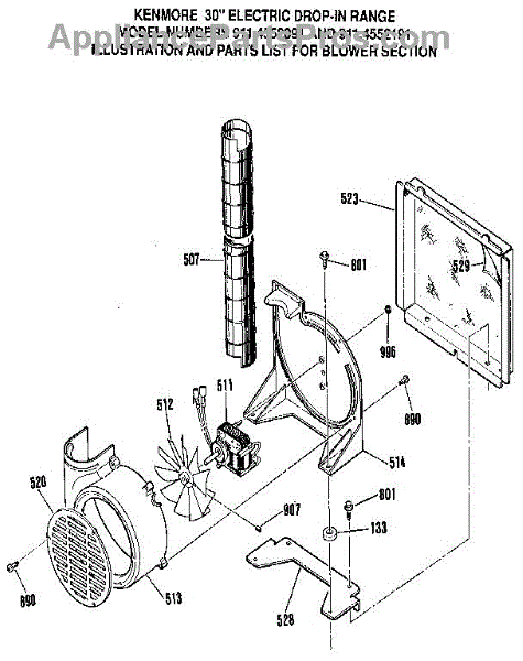 Parts for Kenmore 911.4552191 (9114552191, 911 4552191): Blower Section Parts