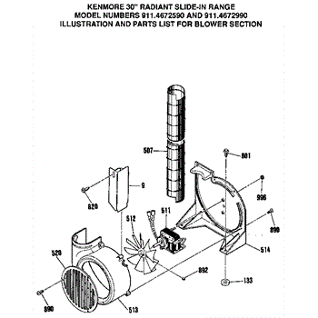 Parts for Kenmore 911.4672590 (9114672590, 911 4672590): Blower Section Parts