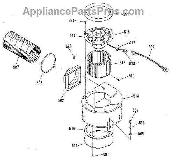 Parts for Kenmore 911.9698893 (9119698893, 911 9698893): Blower Section Parts