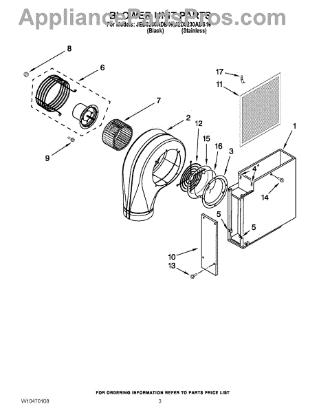 Parts for Jenn-Air JED8230ADB16: 02 - Blower Unit Parts