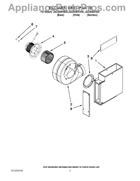 Parts for Maytag JGD3536WS00: 03 - Blower Unit Parts