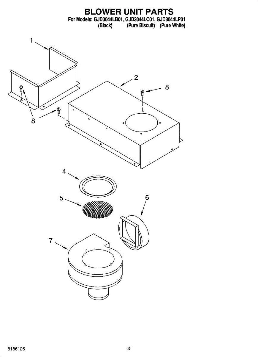 Parts for Whirlpool GJD3044LC01: 02 - Blower Unit Parts, Miscellaneous Parts