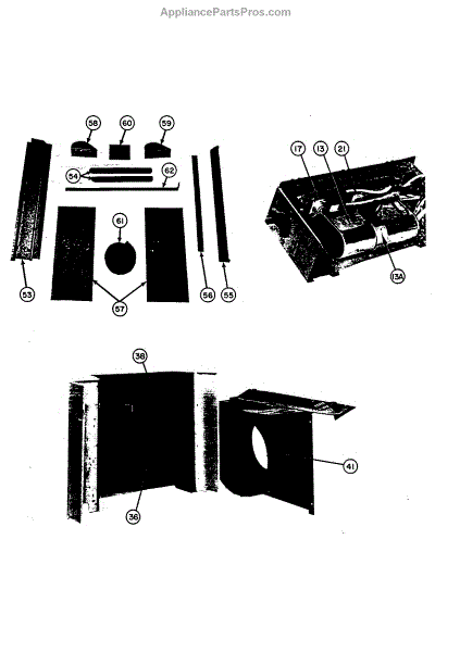 Parts for Carrier 73HCA333301: Blower Wheel, Thermostat, & Window Mount Assembly Parts