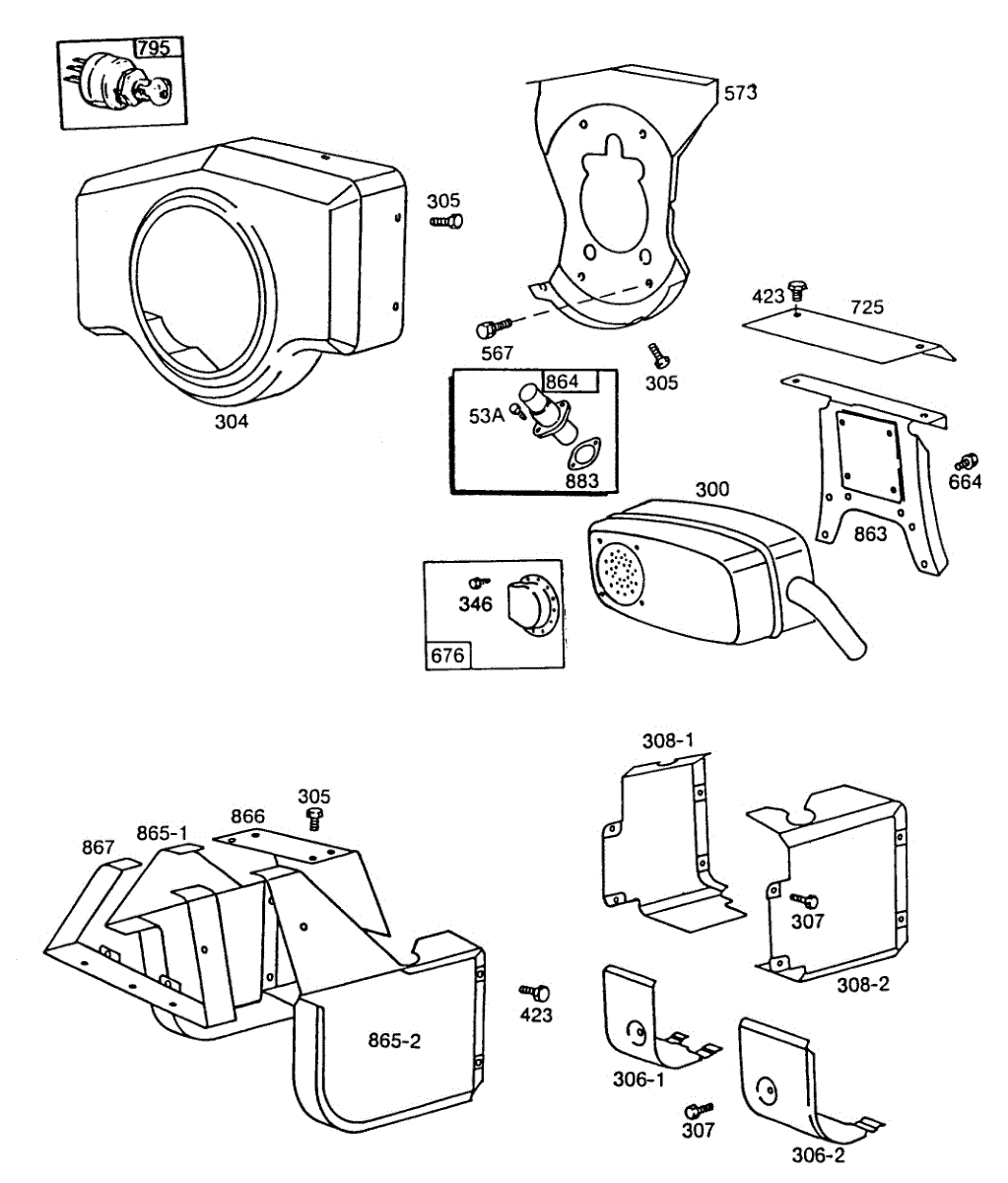Parts for Briggs & Stratton 404437-0111-01: Blowerhsg,Mufflers,Shielding Parts