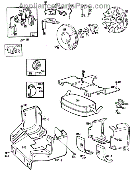 Parts for Briggs & Stratton 404707-0115-01: Blowerhsg,Mufflers,Shielding Parts