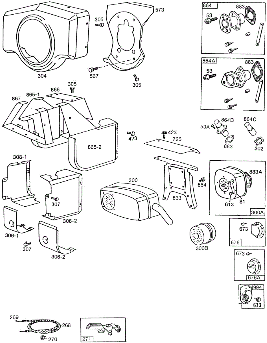 Parts for Briggs & Stratton 422437-0724-01: Blowerhsg,Mufflers,Shielding Parts