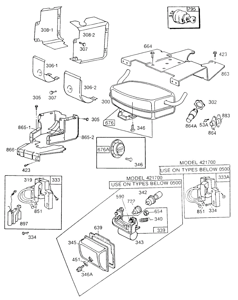 Parts for Briggs & Stratton 422707-0015-02: Blowerhsg,Mufflers,Shielding Parts