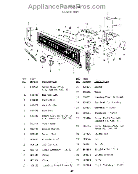 Parts for Roper 8501L40: 26 - :Bmodel 8581-L40, Console Panel Parts