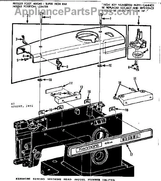 Parts for Kenmore 158.17821 (15817821, 158 17821): Bobbin Winder And Top Cover Parts