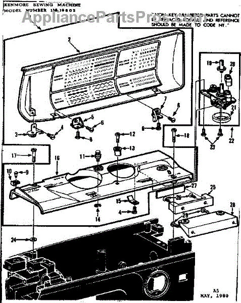 Parts for Kenmore 158.19802 (15819802, 158 19802): Bobbin Winder And Top Cover Parts