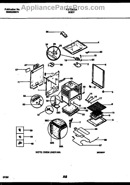 This oven insulation surrounds the oven cavity to retain heat and protect nearby components and cabinetry. Replacing a burnt or deteriorated insulation blanket restores temperature stability and helps keep exterior surfaces cooler on your range during cooking.