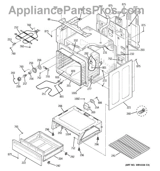 The Rear Door Support is an OEM replacement part for GE ranges. Located at the base of the range, this bracket provides weight-bearing support for the lower oven drawer. It facilitates smooth extension and retraction of the drawer. Causes of faulty support can include cracks or fractures developing over extended use, worn joints unable to sustain drawer weight, or misalignment from repeated opening/closing stress. Symptoms of a bad support include: