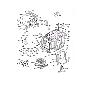 This Back main is the oven's rear chassis panel that supports internal components and protects wiring. It restores structural support and helps prevent contact with hot or moving parts for safe operation. What it does: