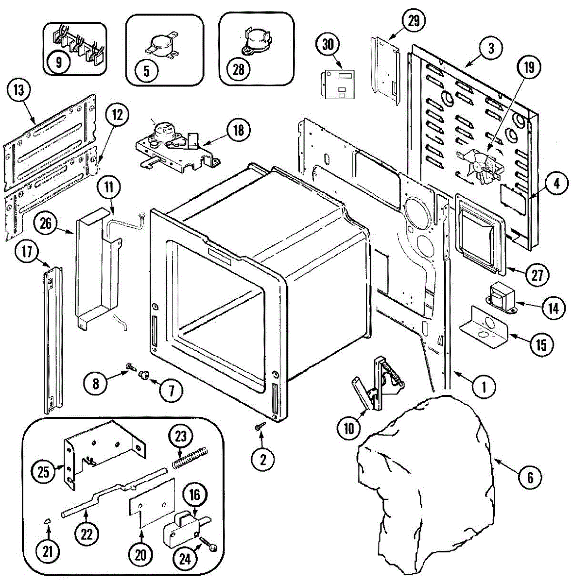 This safety thermostat monitors internal temperature and opens the circuit if the appliance overheats. Replacing a failed high-limit thermostat restores heat and helps protect controls, wiring, and nearby components from thermal damage. What it does: